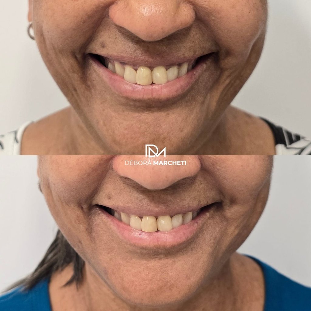 Preenchimento de marionete reestrutura o canto da boca, deixando o rosto jovial.