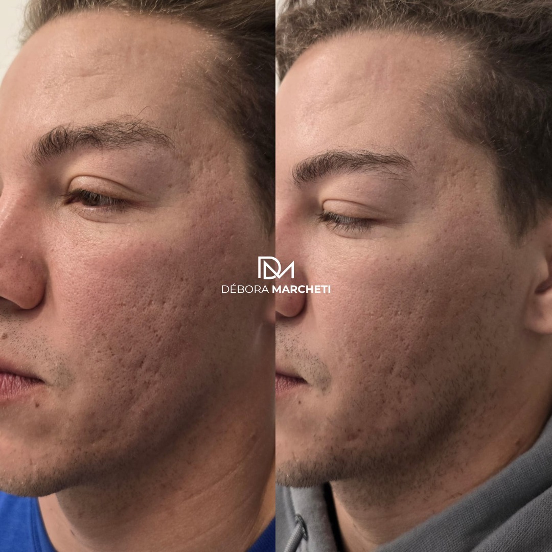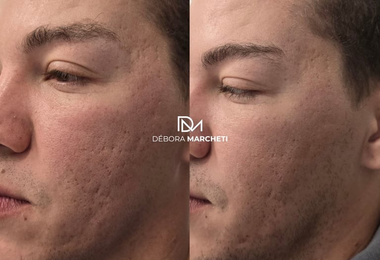Microagulhamento facial para estímulo de colágeno, melhora de manchas, cicatrizes de acne e rejuvenescimento da pele.