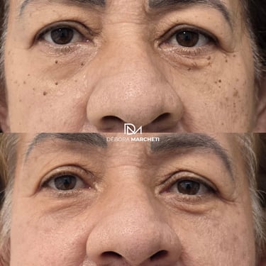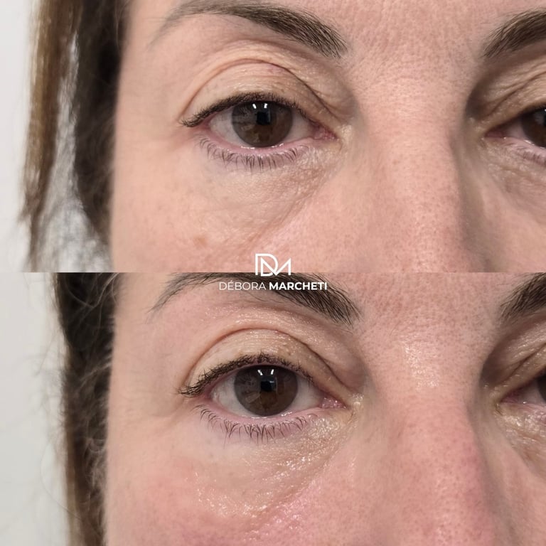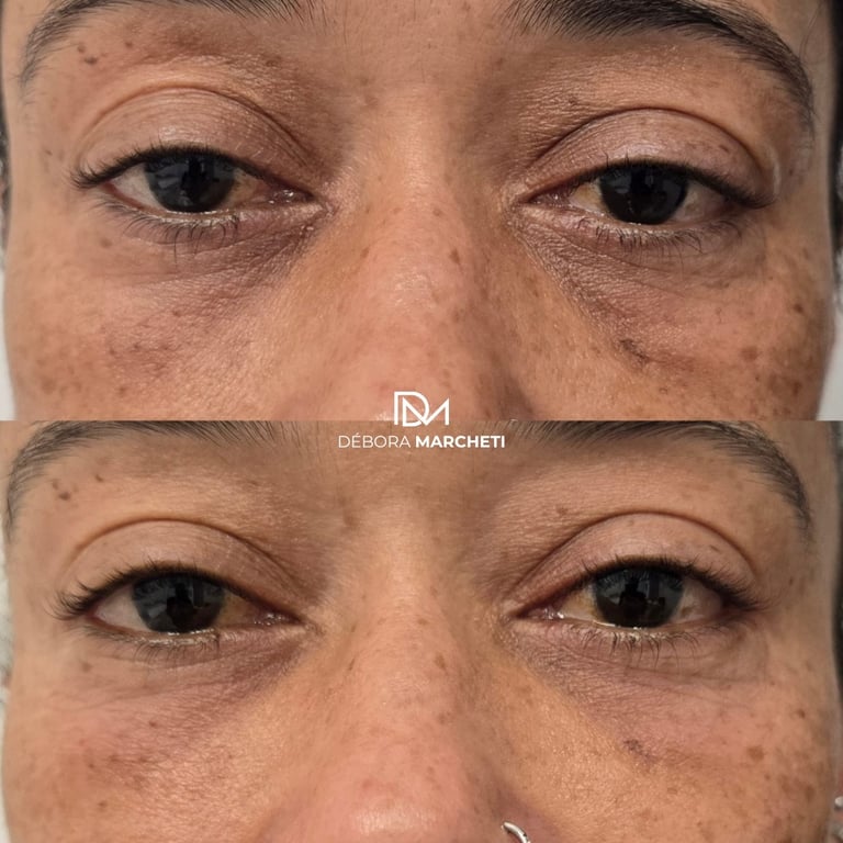 Preenchimento de olheira com ácido hialurônico para suavizar olheiras profundas e devolver um olhar descansado.