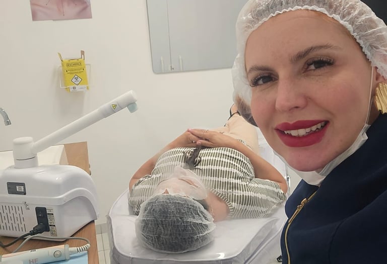 Dermaplaning facial para remover células mortas e pelos finos, deixando a pele mais lisa, iluminada e com melhor absorção de ativos.