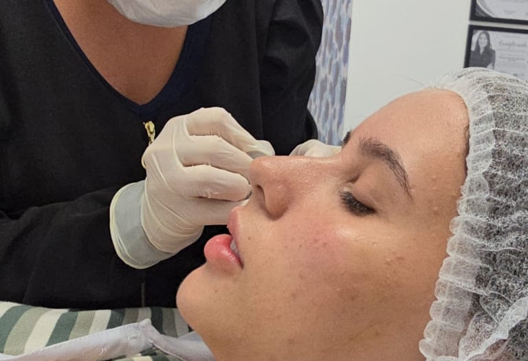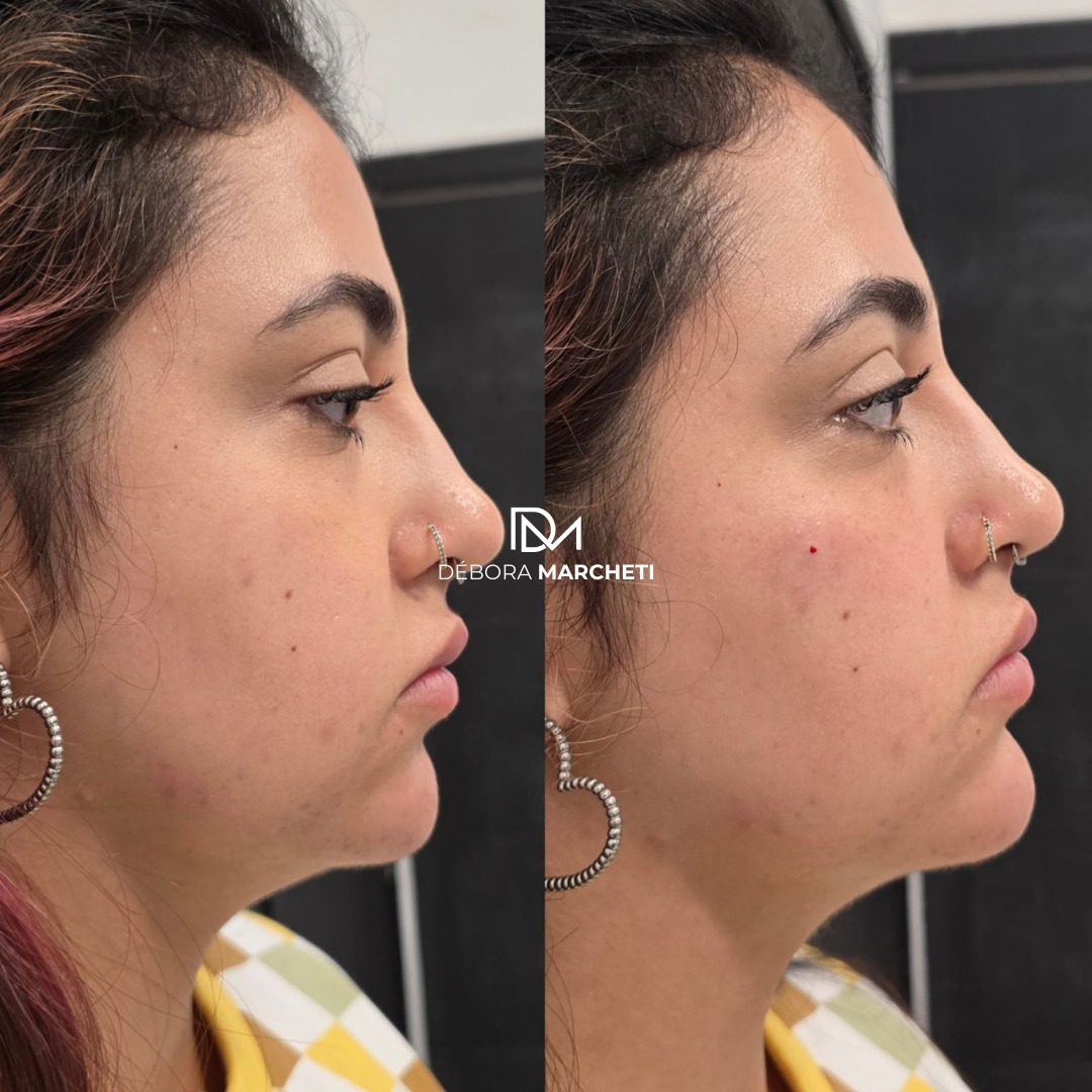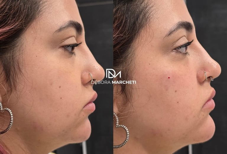 Rinomodelação com ácido hialurônico para corrigir imperfeições do nariz sem cirurgia, com resultado imediato e natural.
