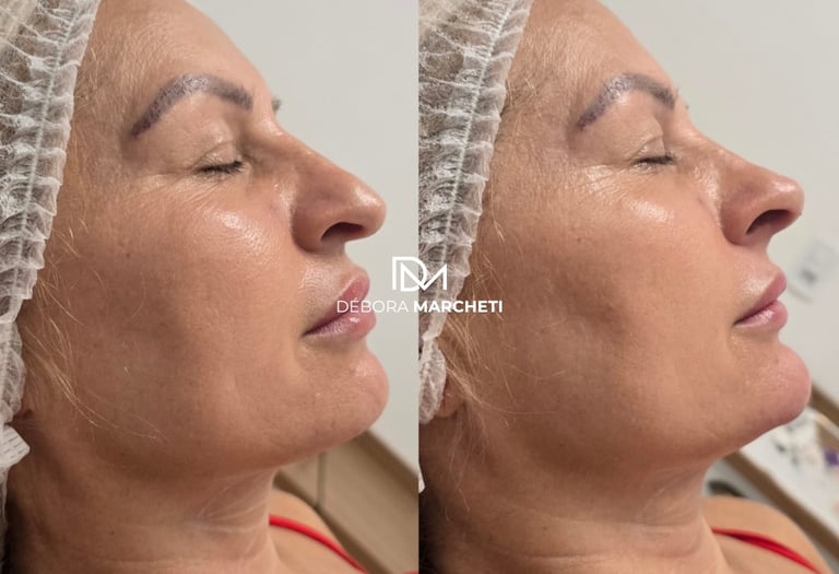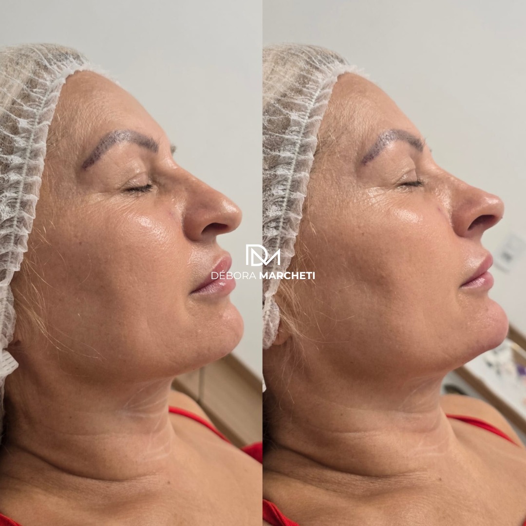Preenchimento facial para bigode chinês com resultado natural e rejuvenescimento imediato.