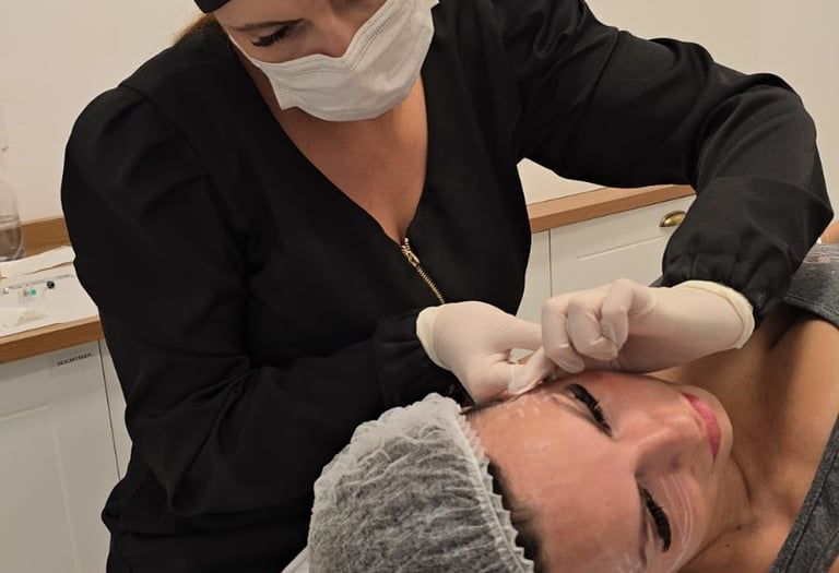 Peeling químico para renovação da pele, clareamento de manchas, melhora da textura e estímulo de colágeno.